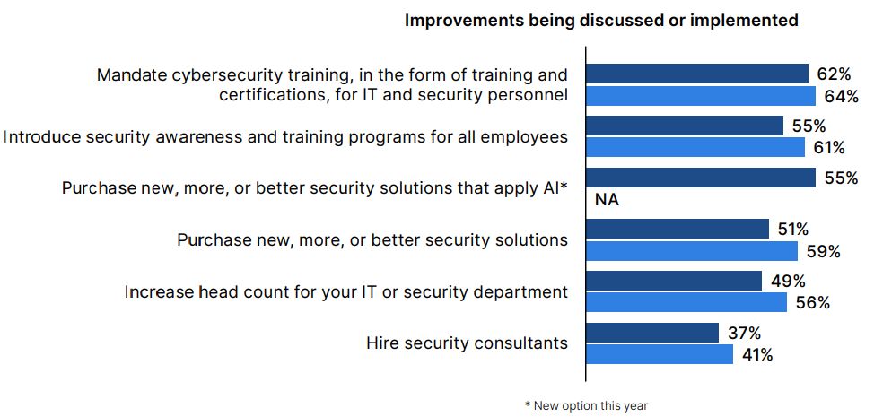 The report also notes that while cybersecurity is becoming a board-level priority, with 76% of boards increasing focus on the issue, understanding of AI risks lags. Less than half (49%) of respondents believe their boards fully comprehend the potential risks associated with AI.